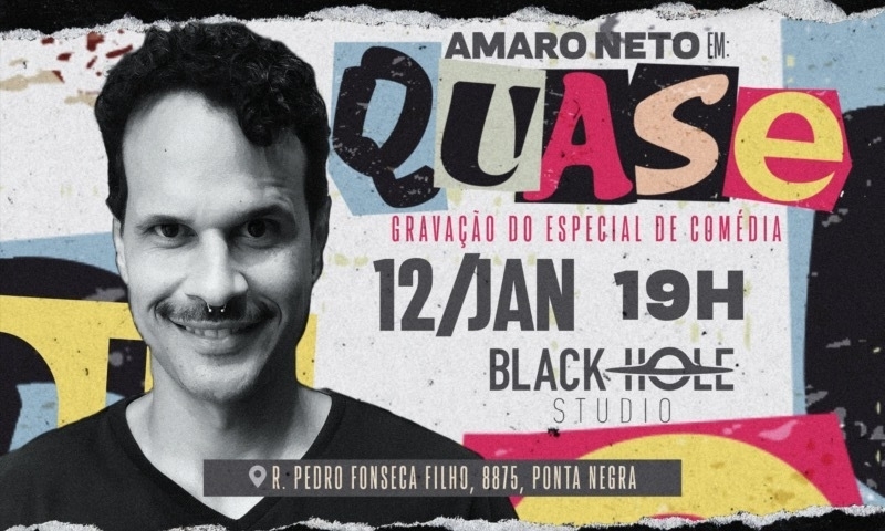 Domingo, 12/01, às 19h, no Estúdio Black Hole, um local aconchegante e intimista, perfeito para um show de comédia único, com a proximidade do público, criando uma experiência inesquecível, porém, com poucos lugares. O "Quase" é um espetáculo feito com a comédia da vida real e minha visão maluca do mundo. Mas atenção: São apenas 40 lugares e essas vagas acabam rápido! 🚨🎬