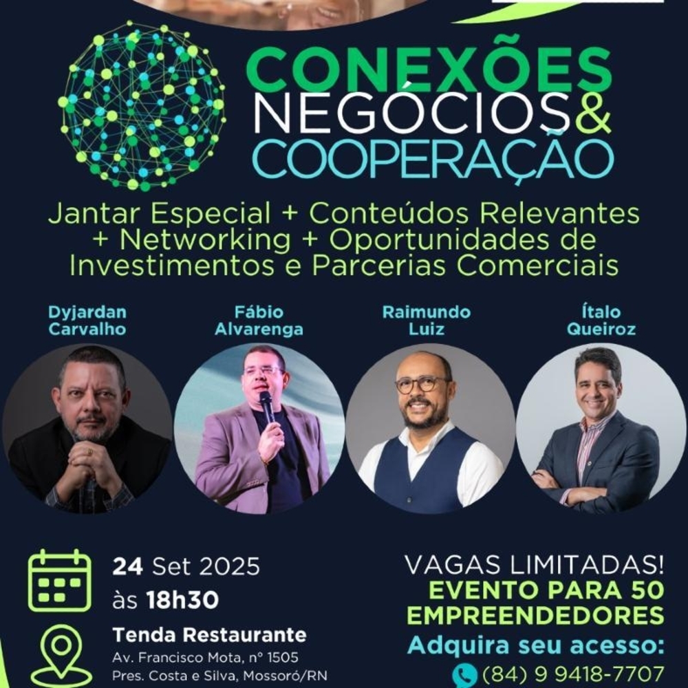 No dia 24 de setembro, a noite promete ser épica! Prepare-se para uma imersão em networking de alto nível, onde você terá a oportunidade única de se conectar com empresários visionários de diversos setores de Mossoró e Região.