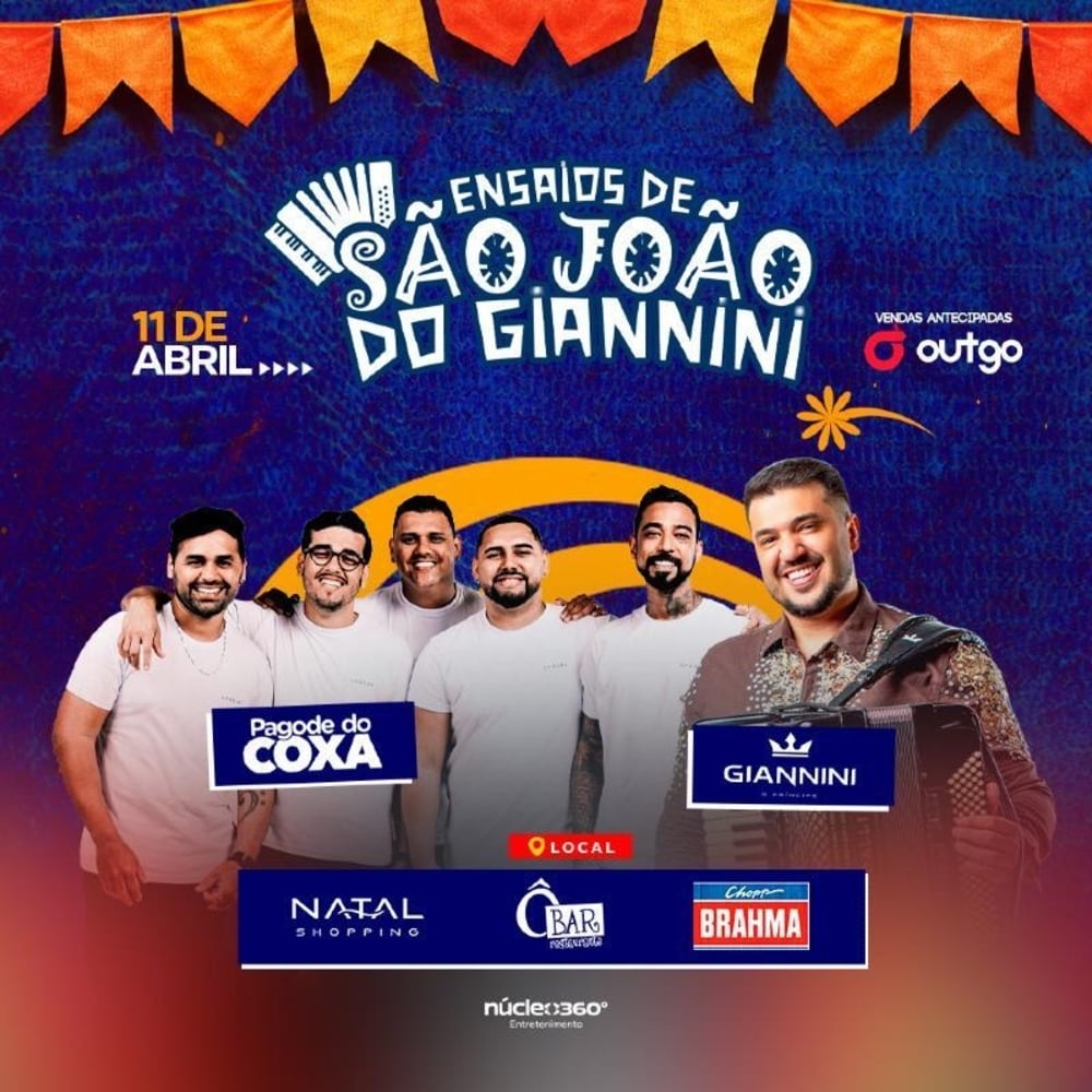 A primeira edição dos Ensaios de São João do Giannini será no sábado dia 11 de Abril, no O Bar Natal Shopping, a partir dás 16h. Além do forró do primo ainda vai rolar um showzaço do Pagode do Coxa.