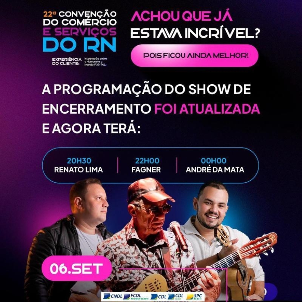 A Convenção do Comércio e Serviços do RN é o maior evento empresarial do estado, promovido pela Federação das CDLs do RN. Realizada a cada dois anos, reúne empresários, empreendedores e especialistas para debater tendências, inovação, vendas, liderança e transformação digital.