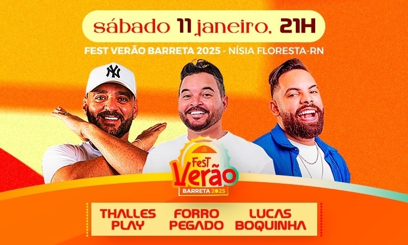 Abertura do Fest Verão Barreta 2025, na quadra do antigo Barreta Praia Club, com Forró Pegado, Thales Play e Lucas Boquinha.