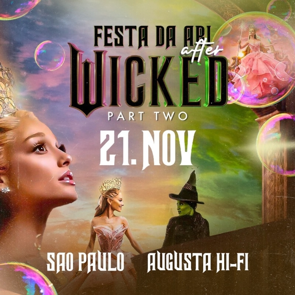 No fim de semana da estreia, vem aí a FESTA DA ARI – ESPECIAL AFTER DO WICKED 2, na Augusta Hi-Fi, dia 21 de novembro, pra todo mundo continuar no clima e celebrar a nossa Glinda favorita!