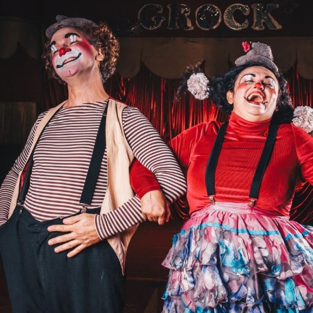 O espetáculo “Gargalhada Quase Tradicional” traz a essência poética da comicidade de picadeiro. Nele, a Palhaça Ferrugem e o Palhaço Espaguete envolvem o público com números de fantoche, mímicas, malabarismo, mágica e criatividade “minimalista”, além de das típicas cenas de palhaçada de picadeiro. Criado pelos circenses Nil Moura (Espaguete) e Gena Leão (Ferrugem), o Circo Grock teve sua estreia em 2006. Com uma vasta experiência dentro e fora do Brasil, a dupla e sua família conduzem os espetáculos do Circo Grock, emprestando seus conhecimentos de circo, teatro e dança para fazer uma releitura das artes do picadeiro em seu aspecto mais poético e tradicional.