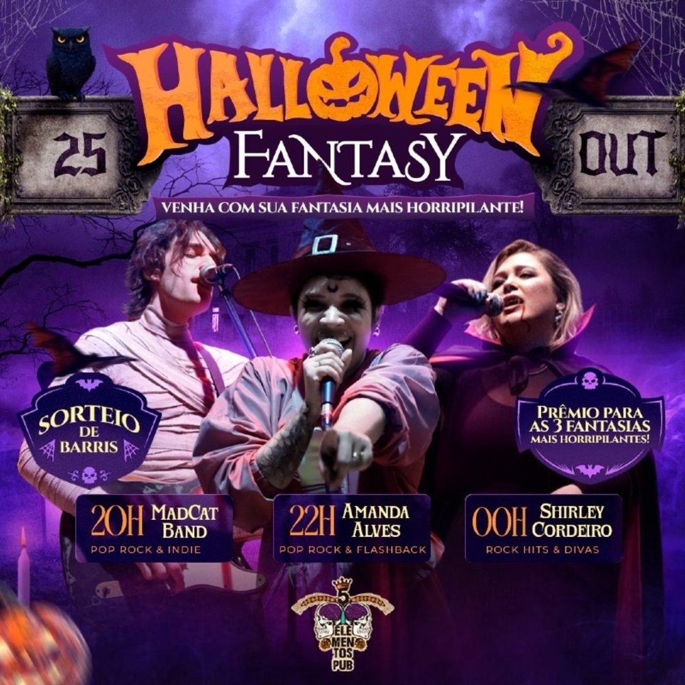 Música boa, drinks temáticos e a atmosfera sombria que só o Halloween do Pub 5 Elementos pode oferecer.