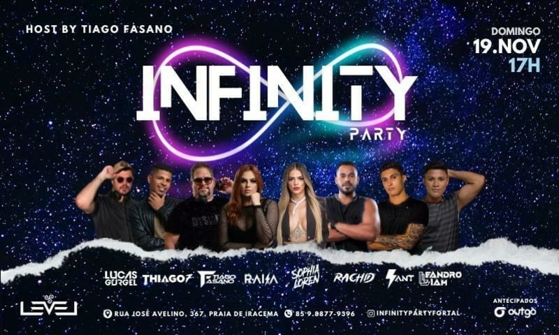 Na semana da Proclamação da República, Fortaleza vai receber um número imenso de turistas de todo o mundo para grandes eventos que acontecerão na cidade. E a @infinitypartyfortal vai fechar o FERIADÃO com um super AFTER no Domingo 19/11 a partir das 17 horas. O Open Air da Level te espera! Serão 12 horas de festa! Como aconteceu ano passado, vamos reunir um line-up 100% de talentos da terra.