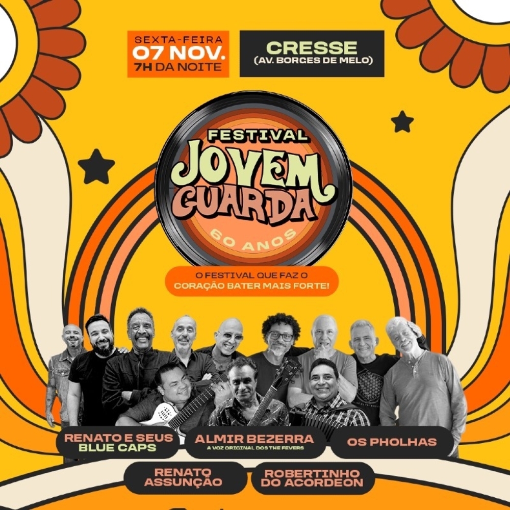 FESTIVAL JOVEM GUARDA 60 ANOS O EVENTO QUE VAI SACUDIR FORTALEZA, O FESTIVAL QUE VAI REUNIR TODAS AS BANDAS E ARTISTAS EM UMA SÓ NOITE. O SHOW CELEBRA 60 ANOS DO MOVIMENTO QUE O MARCOU A ÉPOCA NO PAÍS A JOVEM GUARDA.