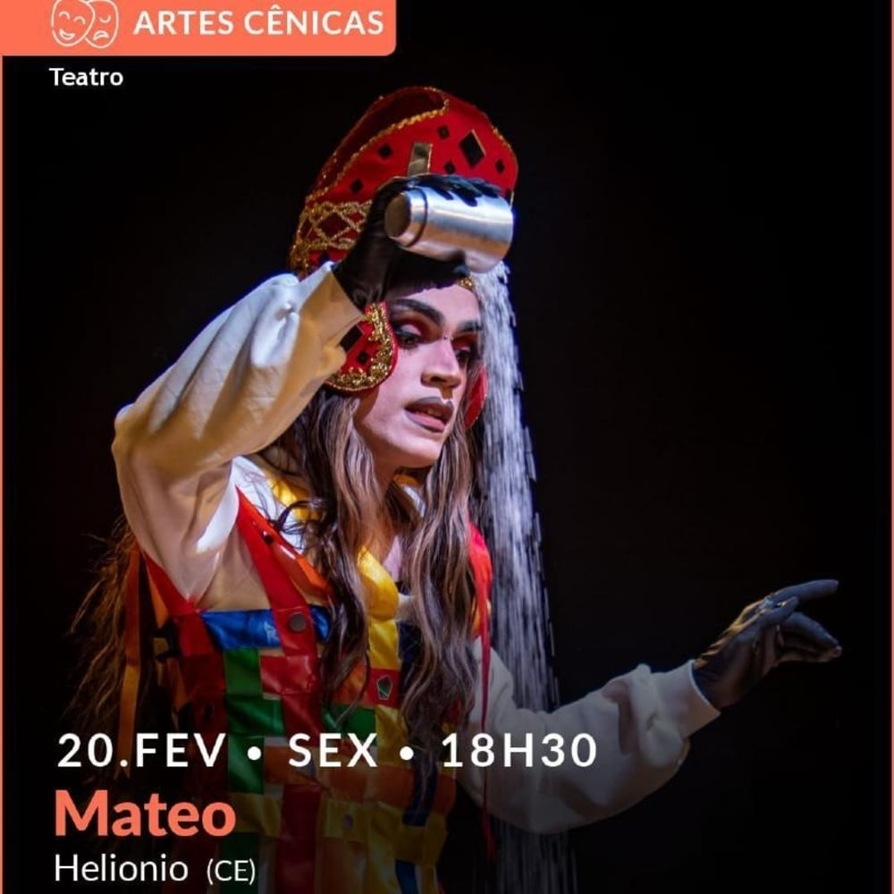 Coral é uma figura etérea, destinada a levar esperança à vida monótona de Mateo, mas sua missão é ameaçada por Carranca. Escrito, dirigido e interpretado por Helionio, o espetáculo ambientado na Nave Mãe transita entre sonho e realidade, revelando um território onde memória e transformação se cruzam. Enquanto artista LGBTQIAPN+ no Cariri cearense, Helionio une a arte drag às tradições populares, fazendo de Mateo um convite a refletir sobre identidade, espiritualidade e representatividade em meio à rotina automatizada. Classificação: 16 anos. Duração: 1h.