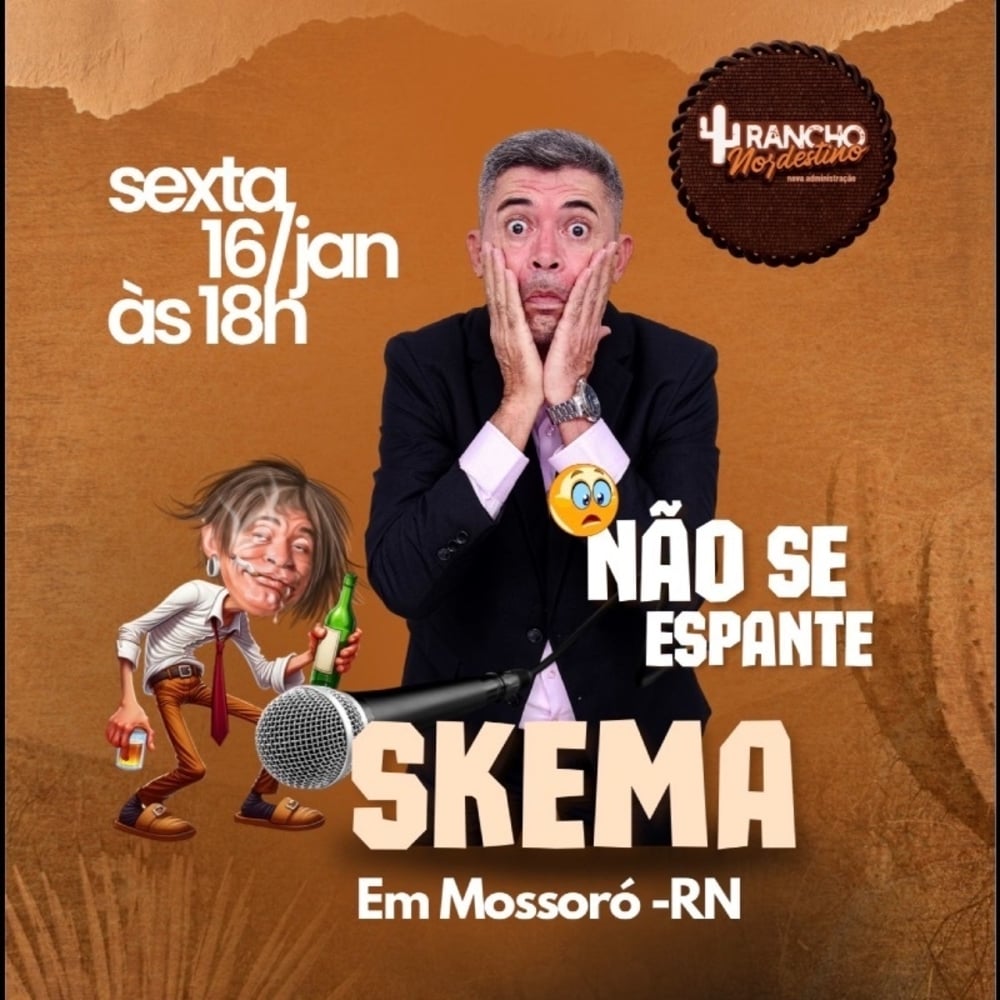 Com seu estilo único, Skema transforma situações do dia a dia em piadas hilárias, garantindo diversão do começo ao fim. Um espetáculo imperdível para quem quer relaxar, rir muito e curtir um programa leve e animado com os amigos.