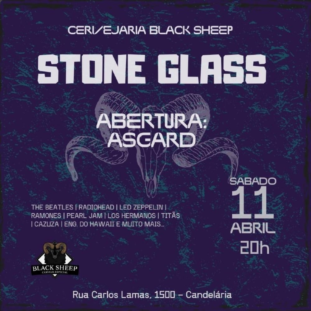 E a Banda STONE GLASS começa às 22h, com um repertório tocando The Beatles, Led Zeppelin, The Doors, Pearl Jam e muito mais!