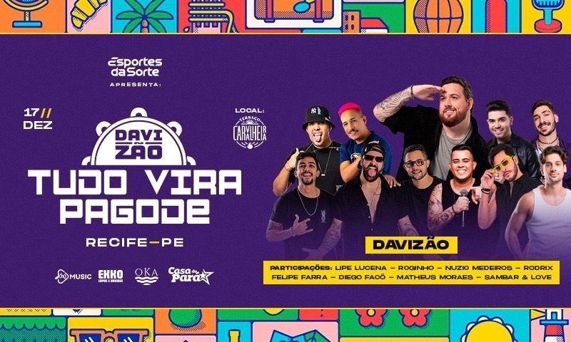 Pela primeira vez em Recife o Tudo Vira Pagode do Davizão desembarca no Terraço mais charmoso do Brasil para 4h de show com repertório inédito.