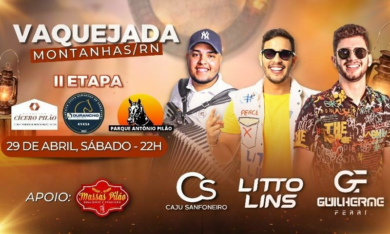 Segunda etapa do circuito avasa, No dia 29 de abril no Parque Antônio pilão Montanhas/RN, Na casa de show do parque, tem forró com as atrações Litto Lins, Guilherme ferri, Caju sanfoneiro. Apartir das 21:00 hs!
