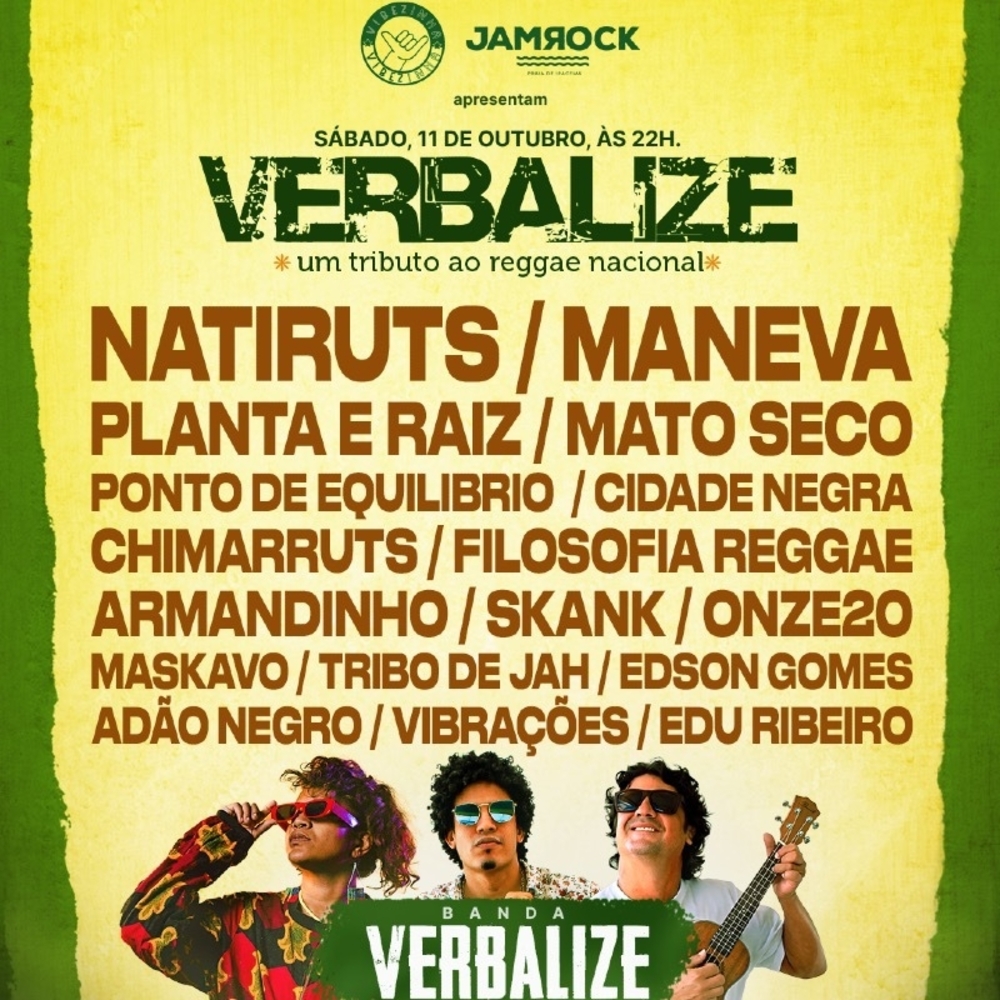 Uma noite inteira celebrando Natiruts, Maneva, Planta & Raiz, Ponto de Equilíbrio, Mato Seco, Cidade Negra, Armandinho, Tribo de Jah, Edson Gomes e muito mais, na energia única da Banda Verbalize!