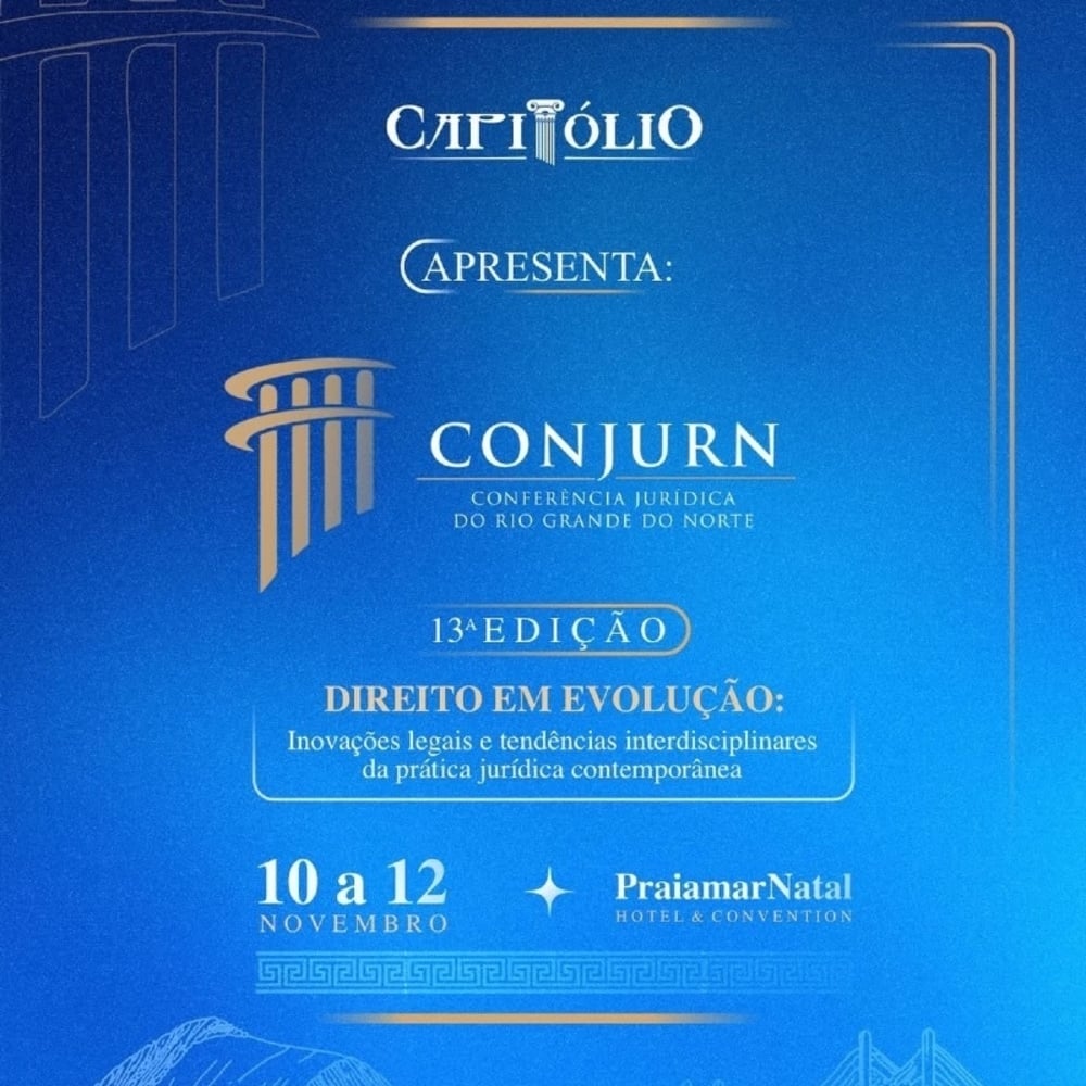 Nos dias 10, 11 e 12 de novembro, a XIII Conferência Jurídica do Rio Grande do Norte reunirá grandes referências do mundo jurídico para três dias de aprendizado, diálogo e novas perspectivas.