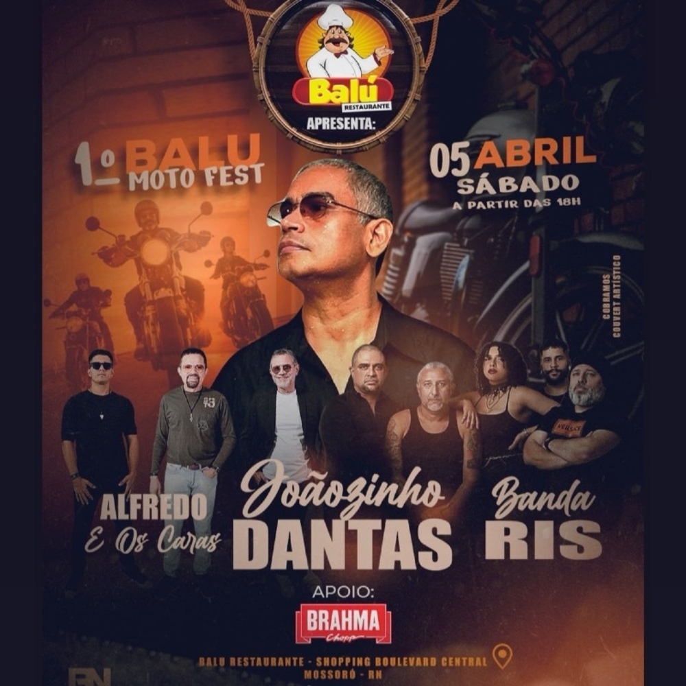 1o. Balu Moto Fest, evento que reunirá as bandas Alfredo & Os Caras, R.I.S. e a atração Joãozinho Dantas.
