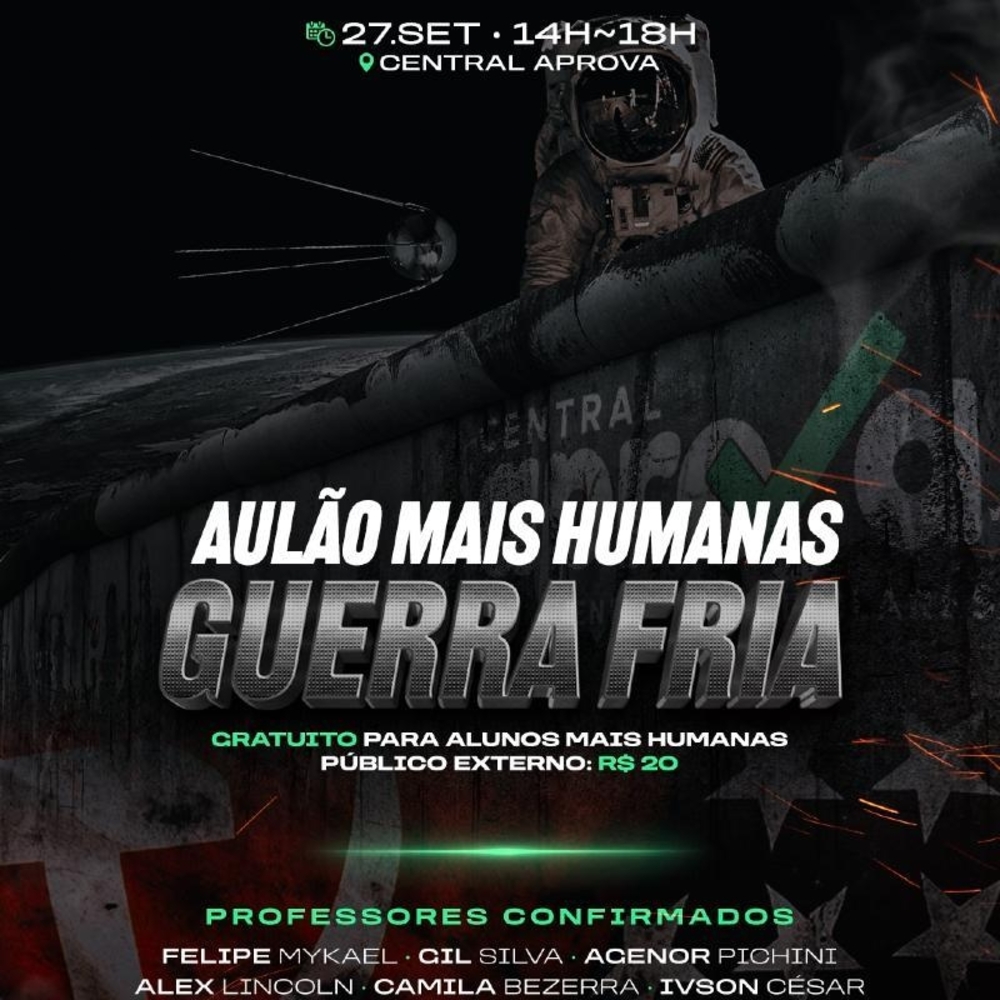 Prepare-se para esse super aulão de um momento épico do século XX! Vamos analisar a Guerra Fria no contexto da história global e do Brasil, explorando o pensamento da época, movimentos sociais, conflitos, dinâmicos e suas consequências políticas, econômicas e socioculturais. Uma oportunidade única para conectar História, Geografia, Filosofia e Sociologia de forma integrada e aprofundada.