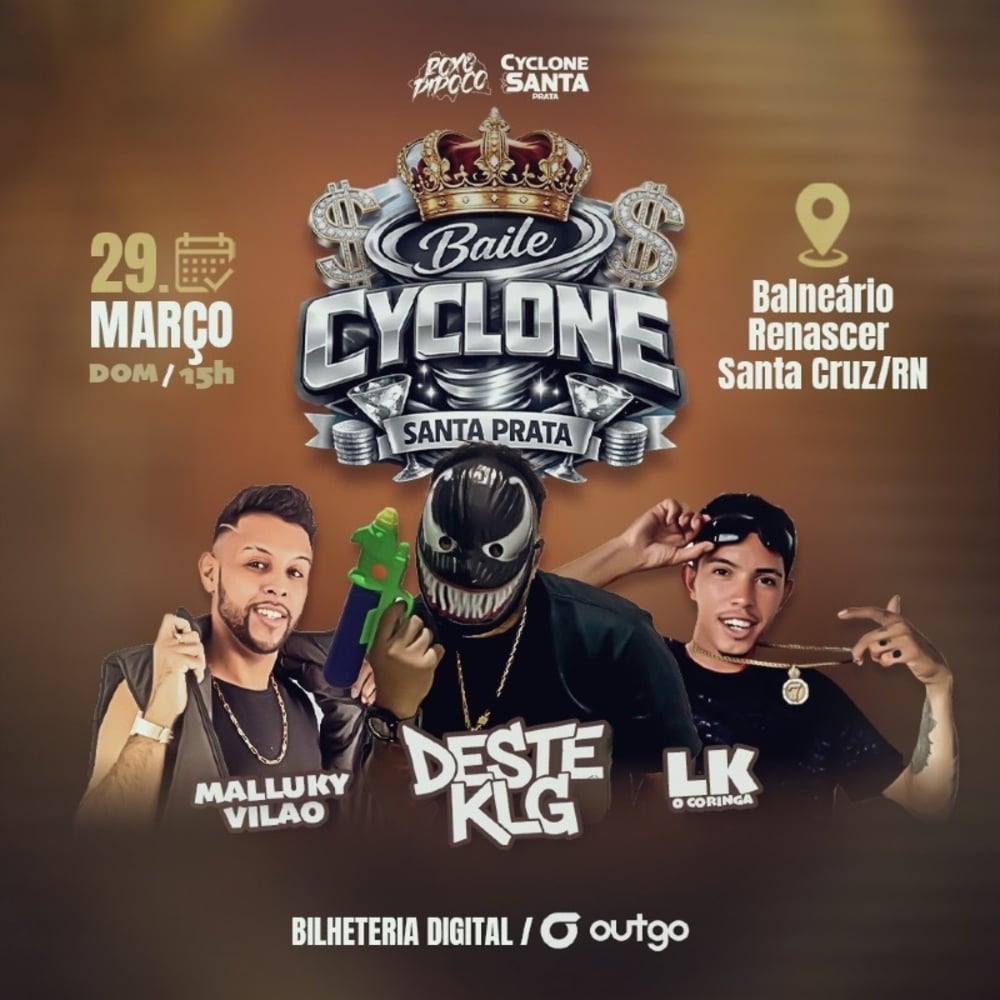 No dia 29 de março, o Balneário Renascer em Santa Cruz/RN vai tremer com o Baile Cyclone Santa Prata, reunindo muita música, energia e aquela vibe que só quem vive o baile entende.