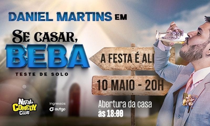 Depois do sucesso em seu primeiro teste, no próximo dia 10 de maio, sexta-feira, @odanielmarttins sobe ao palco do Clubinho para apresentar mais uma vez seu teste de solo "Se casar, beba!".