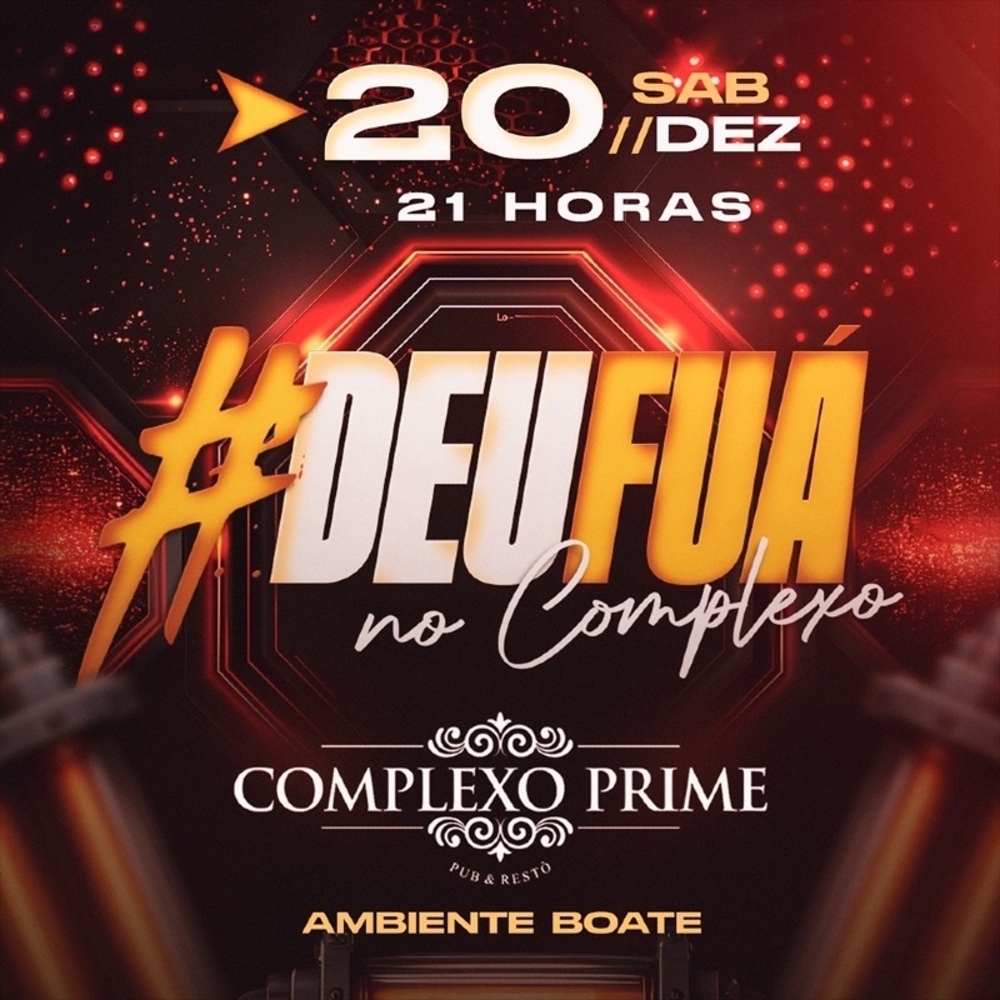 Prepare-se. Mais uma edição DEU FUÁ vem aí agora no Complexo Prime, com uma estrutura grandiosa esperando por você. Será uma noite incrível, intensa e do jeito que só o FUÁ sabe proporcionar. Não fique de fora, garanta já seu ingresso!