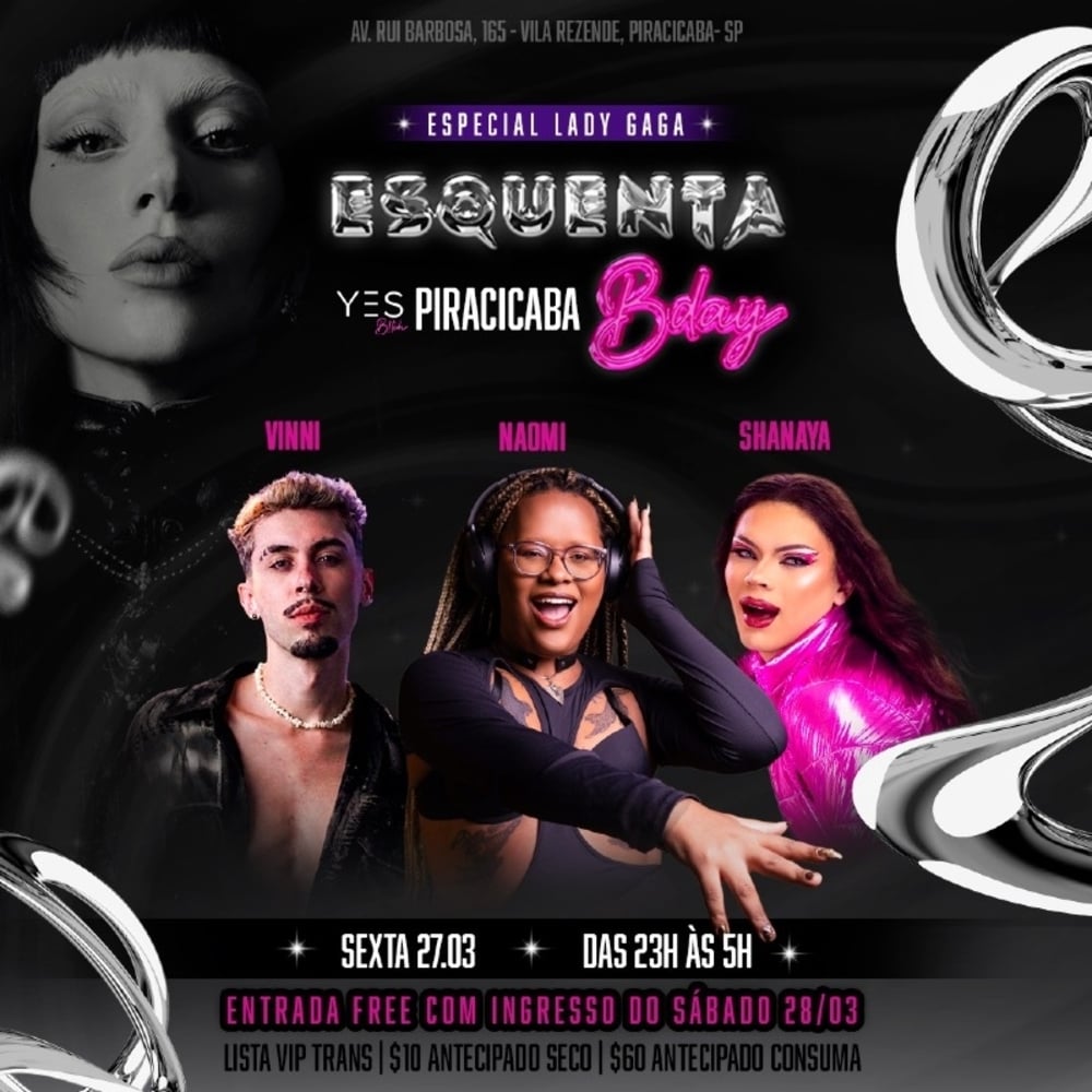 Nesta sexta, o esquenta é mais que especial: vamos esquentar o aniversário da YES e comemorar o aniversário da nossa Mother Monster, Lady Gaga (28/03) do jeitinho que ela merece! 🎉💖