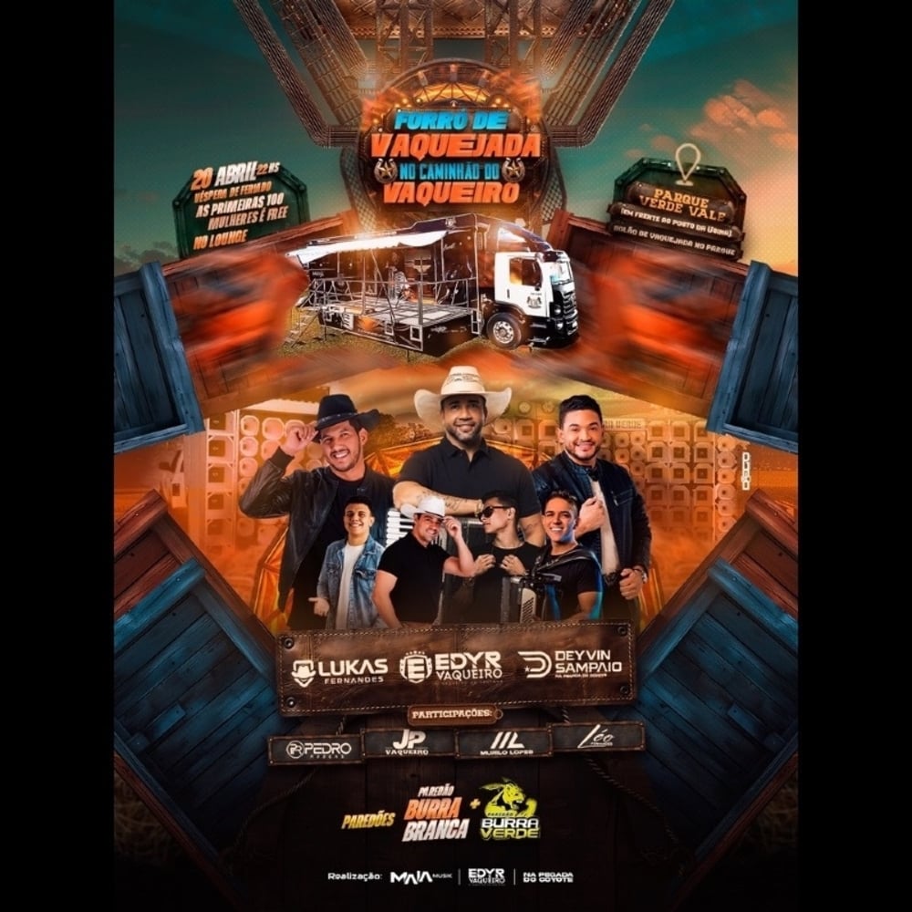 Você vai curtir muito FORRÓ de VAQUEJADA no CAMINHÃO do VAQUEIRO!🤠 A equipe tá formada: @edyrvaqueiro_oficial @napegadadocoyote @deyvinsampaioo @lukasfernandesoficial @pedrorubensofc @jpvaqueiroof @leofernandesoficial_ @omurilolopes