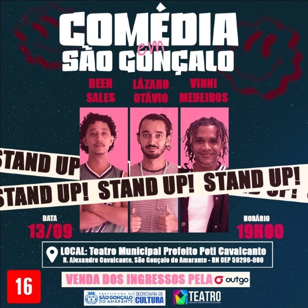 Os comédia estão de volta a São Gonçalo do Amarante e dessa vez voltando com piadas mais engraçadas ainda. No dia 13 de setembro o grupo de comédia formado por Deeh Sales, Lázaro Otávio e Vini Medeiros estão de volta ao Teatro municipal Prefeito Poti Cavalcante para um grande espetáculo de comédia stand-up, não perca essa showzaço.