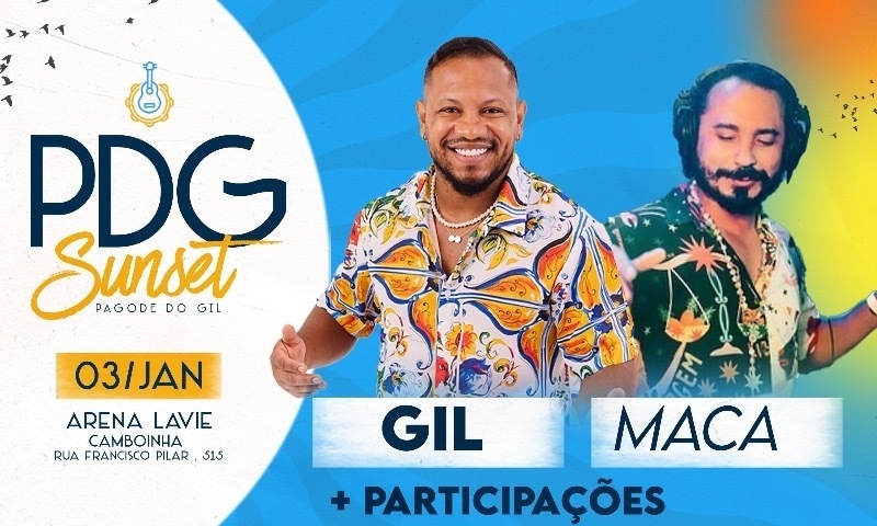 PDG Sunset, uma edição especial do Pagode do Gil com ingressos limitados no melhor do verão da Paraíba. Uma super estrutura montada na arena lavie em Camboinha.