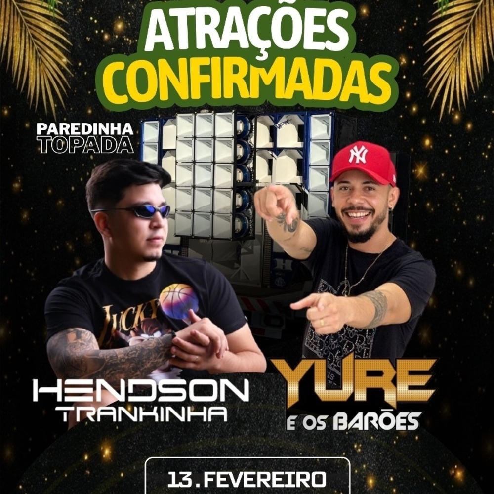 Encerra em 13/02/2026 às 22:00PULSEIRA PARA CURTIR HENDSON TRANKINHA E YURE E OS BARÕES SERÁ PERMITIDO A ENTRADA COM COOLER. CARAVELAS CLUB, AREIA BRANCA-RN