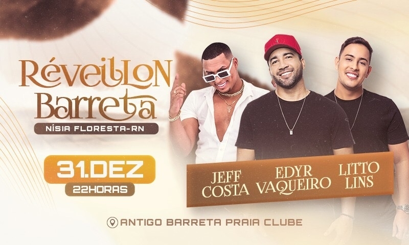 Réveillon de Barreta tem o vaqueiro da sanfona @edyrvaqueiro_oficial, o som envolvente de @littolins e a pressão de @jeffcostaoficial, no antigo Barreta Praia Clube
