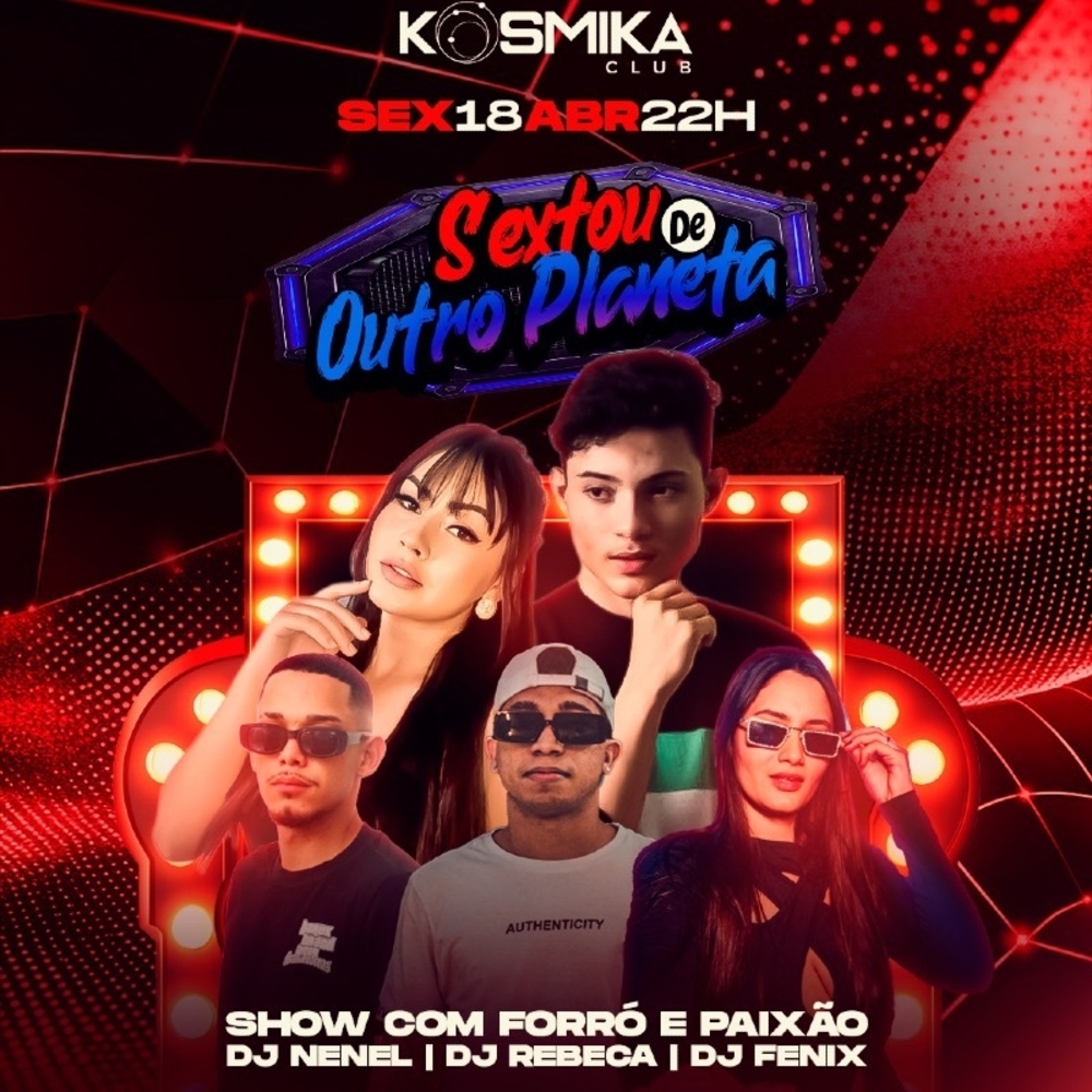 Show ao vivo com Forró e Paixão, além de sets poderosos de DJ Nenel, DJ Rebeca e DJ Fenix.