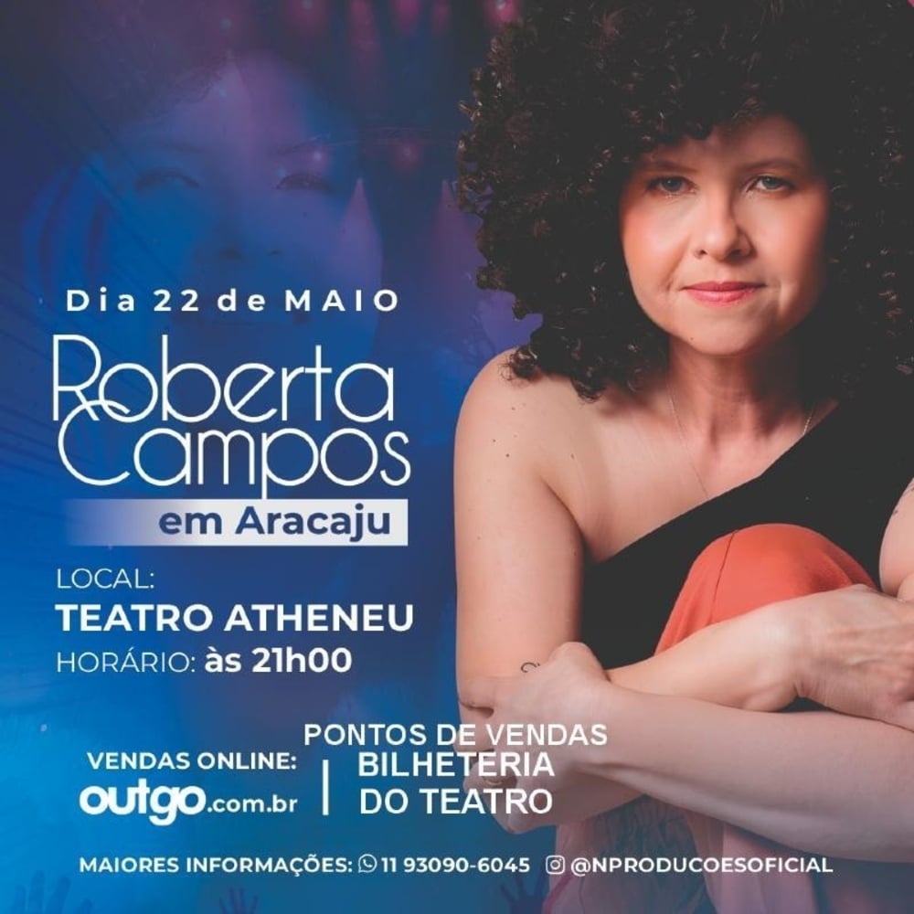 Encerra em 22/05/2026 às 23:00Show COISA DE VIVER COM Roberta Campos em Aracaju no Teatro Teatro Atheneu Atheneu às 21 HRS dia 22 de maio 2026.